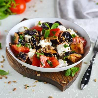 Горячий салат с хрустящими баклажанами 650 ₽ В корзину В корзину Баклажаны, помидоры, кинза, устричный соус, кисло-сладкий чили соус, лук красный, брынза, кунжут Пищевая ценность в 100г - 162 ккал Вес 250 г Баклажаны, помидоры, кинза, устричный соус, кисло-сладкий чили соус, лук красный, брынза, кунжут Пищевая ценность в 100г - 162 ккал Вес 250 г