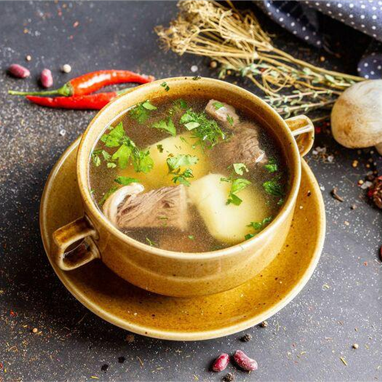 Осетинский суп "Лывжа" из говядины 550 ₽ В корзину В корзину Говядина фермерская, картофель, лук репчатый, специи, зелень Пищевая ценность в 100г - 44,3 ккал Вес 400 г Говядина фермерская, картофель, лук репчатый, специи, зелень Пищевая ценность в 100г - 44,3 ккал Вес 400 г