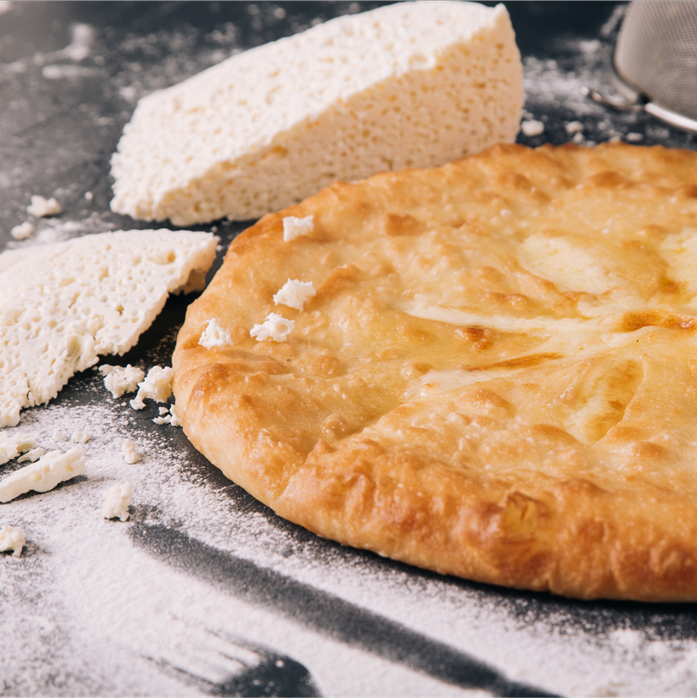 Начинка: Сыр осетинский, грибы(шампиньоны), лук репчатый, соль, перец черный молотый.